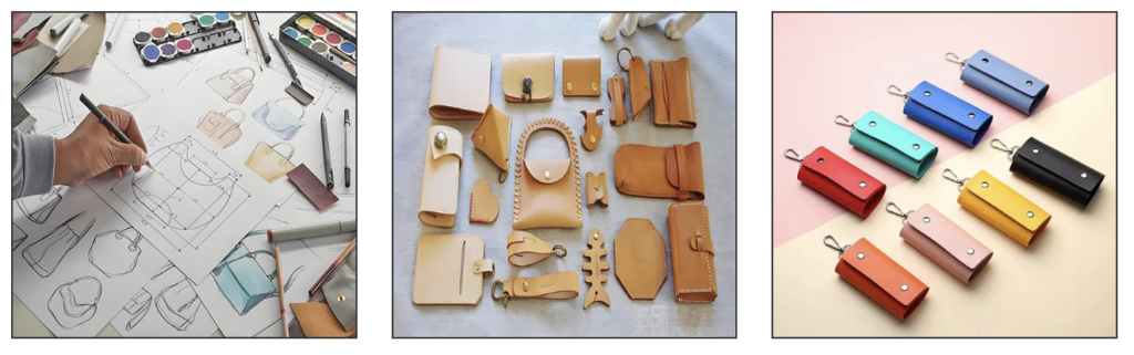 Choose your leather type, size, shape, color, stitching, and finish. Add your unique logo, slogan, or character through embossing, printing, or metal tags. Whether it’s elegant or edgy, minimalist or bold—we make it happen.