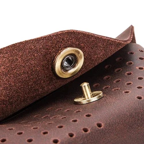Metal logo plates add a premium, durable branding element to small leather goods. Often riveted or stitched onto wallets, luggage tags, or bracelets. Cost: $0.80–$1.50 per unit, based on size and finish.